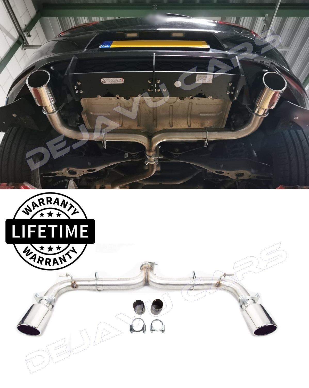 Das Sport Auspuffsystem ist aus hochwertigem Edelstahl gefertigt und mit hochwertigen Edelstahl-Auspuffblenden ausgestattet.