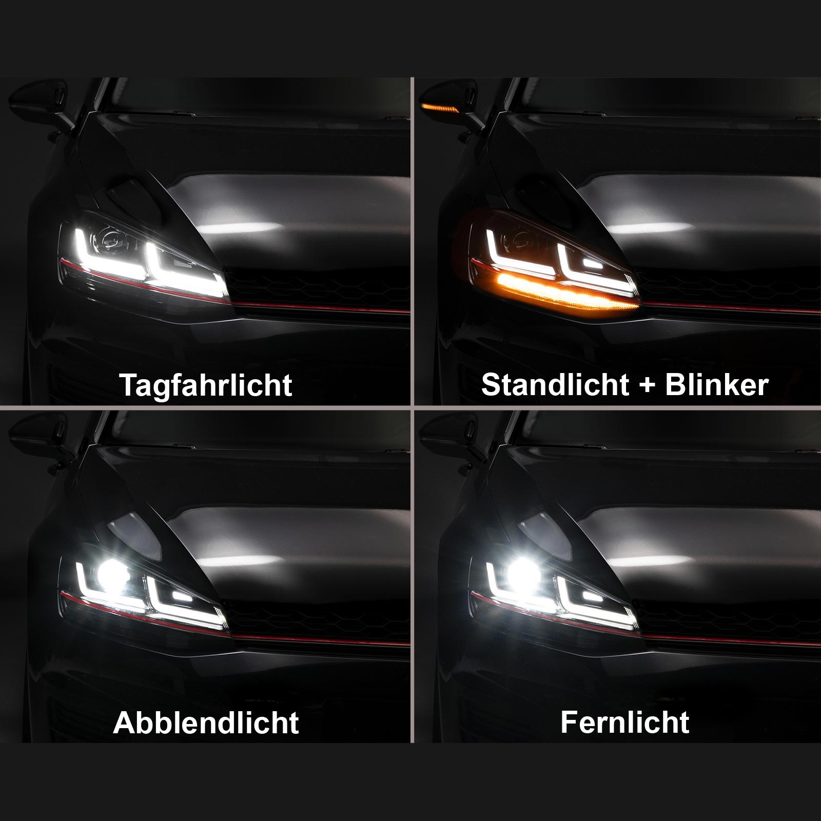 Alleen geschikt voor Volkswagen Golf 7 (Bj. vanaf 2012 tot 2016) vóór-facelift modellen met OEM halogeen of OEM xenon-koplampen met halogeen dagrijlichten.